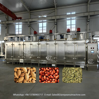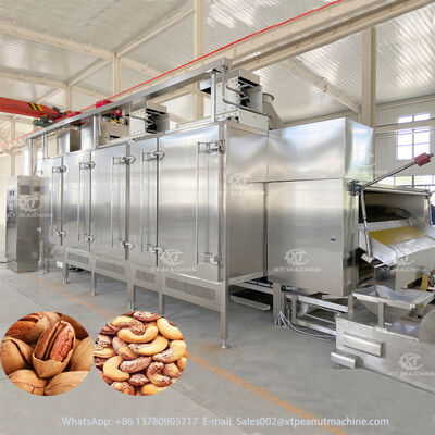 Our continuous nut roaster is engineered for high-efficiency processing of various nuts and dried fruits with production capacities ranging from 300kg/h to 2000kg/h. This industrial-grade equipment features a modular design with adjustable roasting sections to accommodate different production requirements.