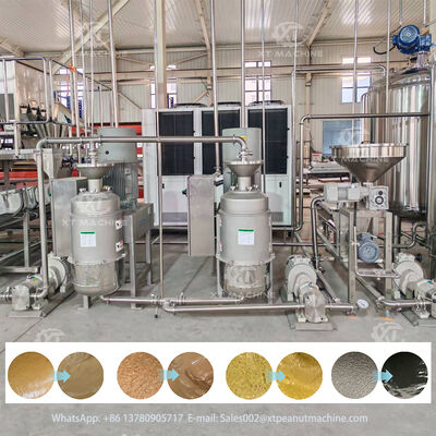 This sesame paste processing equipment is specifically designed for nut processing plants, integrating homogenizers, grinders, and mixers into a compact system that delivers excellent grinding results for crispy peanut butter production.
