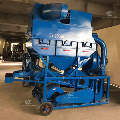 When the peanut destoner is working, the material continuously enters the middle section of the de-shelling screen. Due to the different densities and aerodynamic characteristics of the components in the material, under appropriate vibration and airflow, the less dense peanuts float to the top, while the more dense peanuts sink to the bottom, contacting the screen surface and forming automatic stratification.