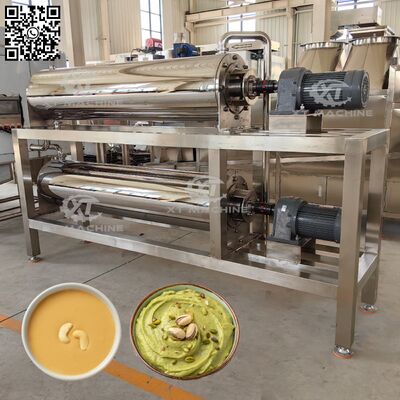 This peanut butter cooler efficiently reduces product temperature to room temperature, enabling continuous operation with hot peanut butter input and cooled output ready for direct connection to filling machines.